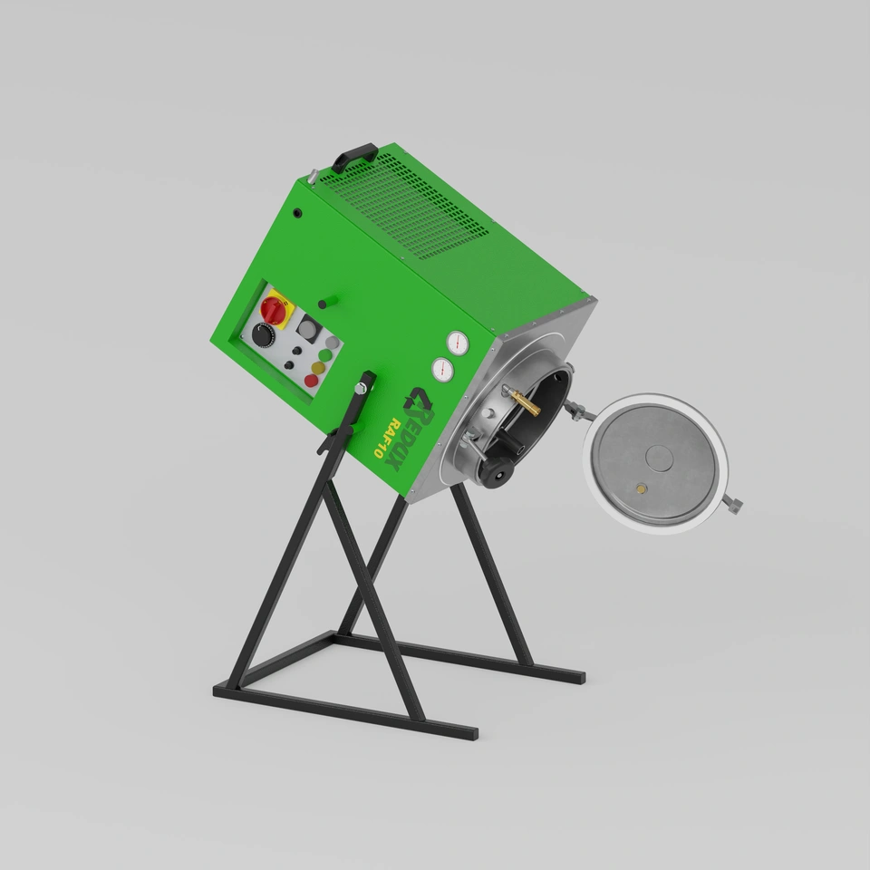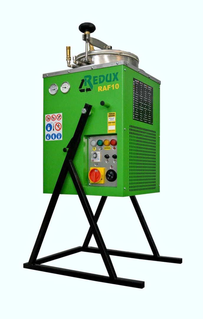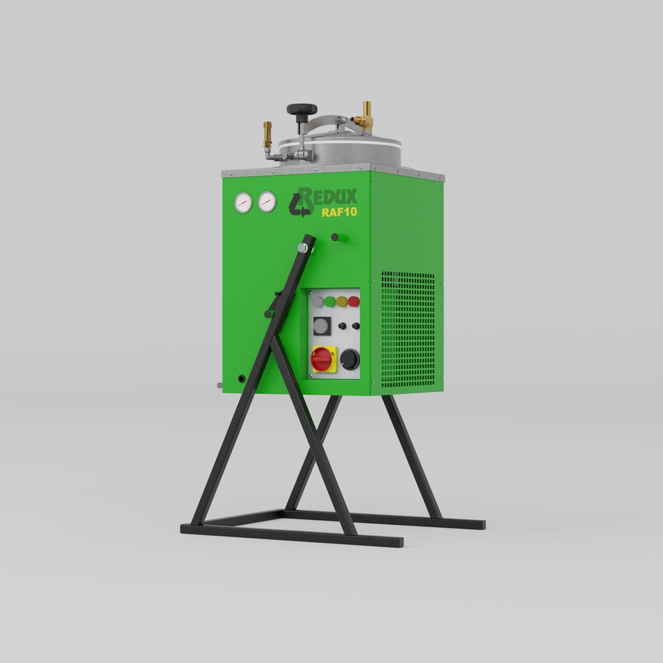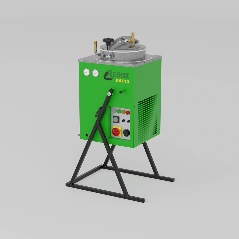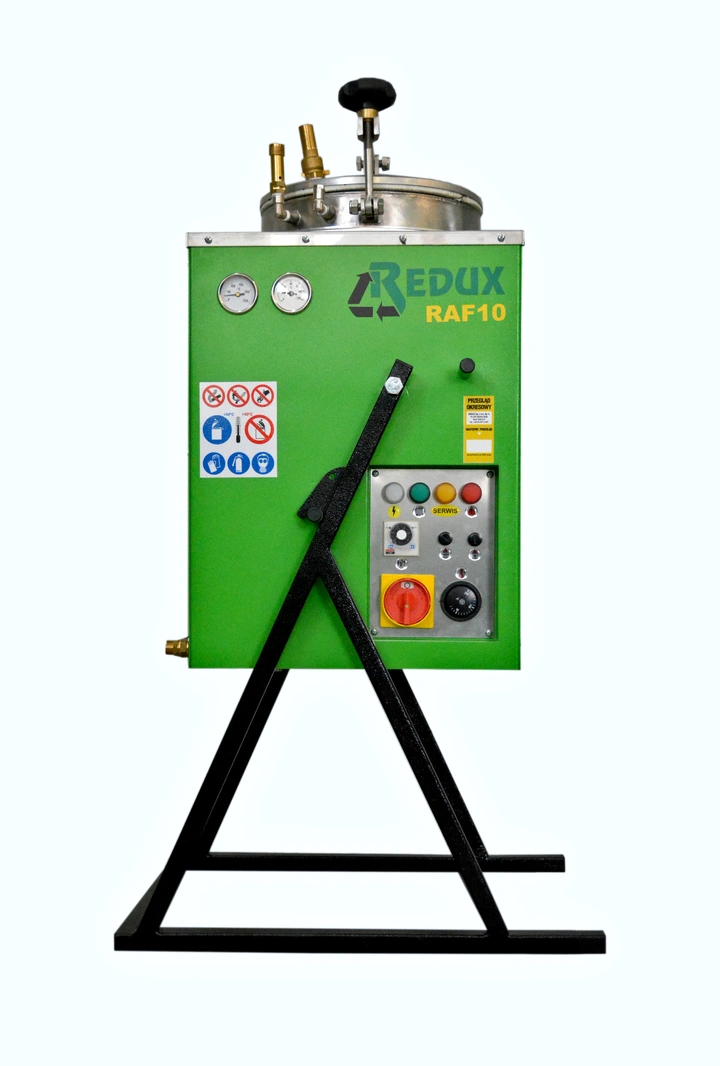 Destylarki RAF 10 to konstrukcja wyposażona w stały zbiornik z możliwością jego przechyłu. Ta funkcja służy do ułatwienia oczyszczania destylatora z odpadu podestylacyjnego. W celu jeszcze większego komfortu obsługi urządzenia można stosować worki do destylacji . Użycie worków do destylacji Redux, gwarantuje optymalne i bezpieczne opróżnianie z odpadów podestylacyjnych. Odpady te nigdy nie wchodzą w bezpośredni kontakt z operatorem, nie powodują zabrudzenia wnętrza zbiornika destylarki, mogą być łatwo zlikwidowane, zgodnie z przepisami.