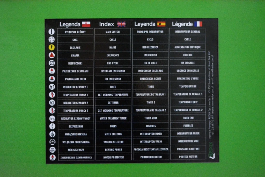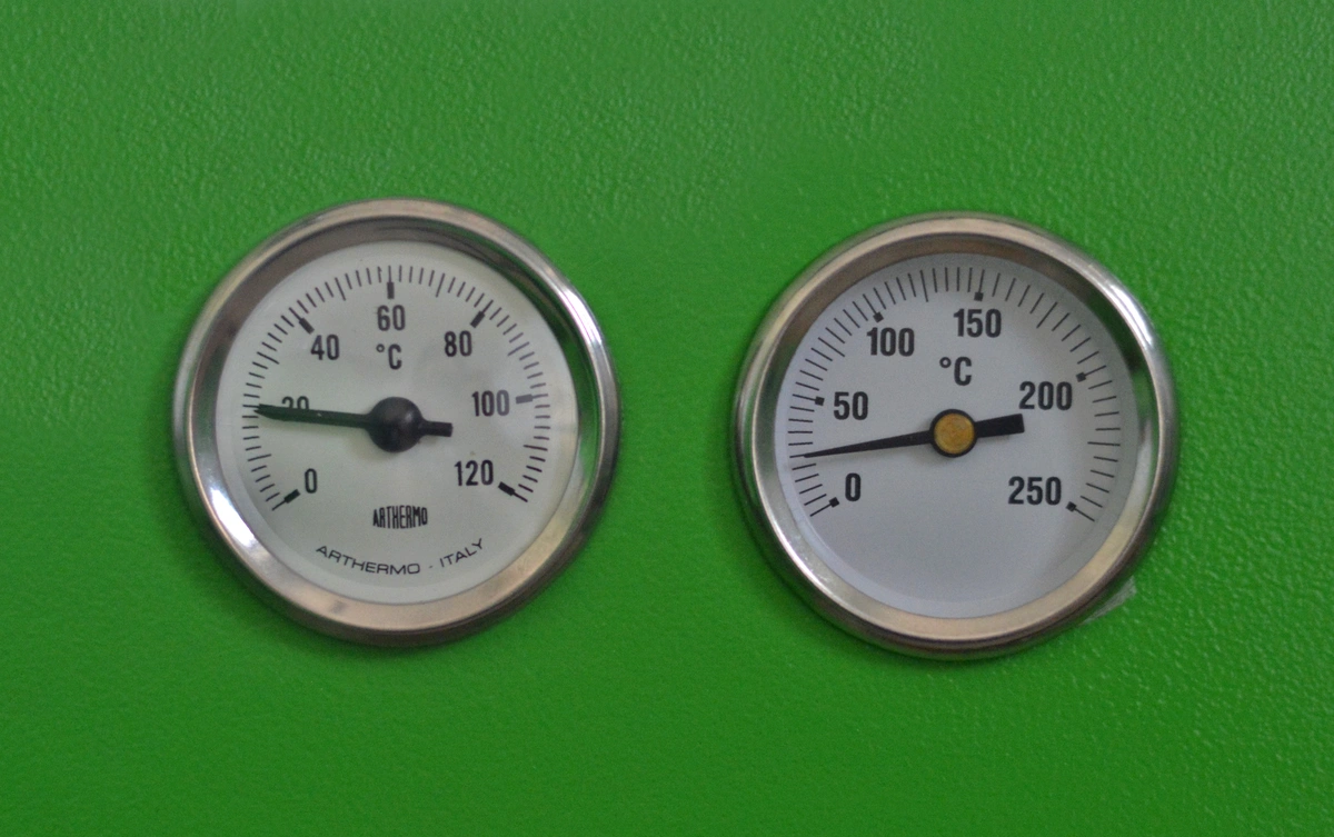 W celu ułatwienia obserwacji procesu destylacji destylator RAF 10 wyposażony jest w dwa wskaźniki temperatur. Wskaźniki temperatury destylatu oraz oleju.