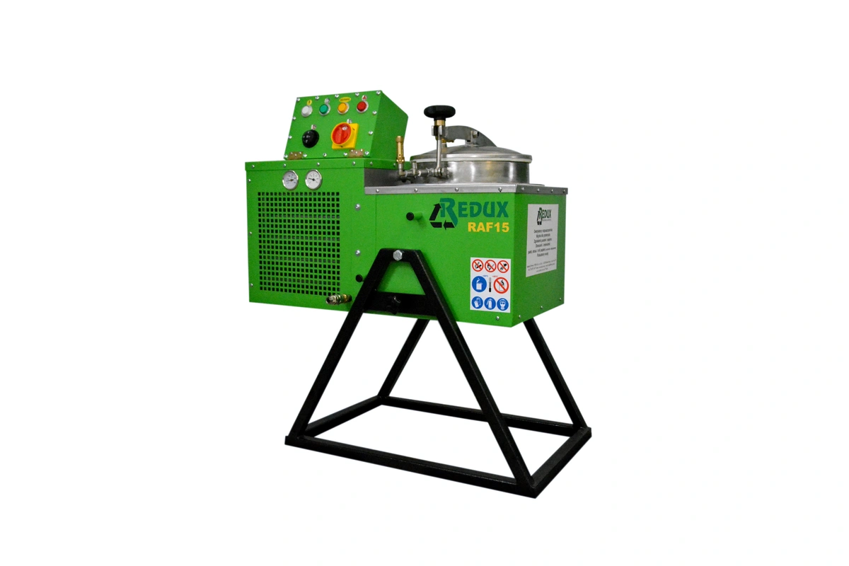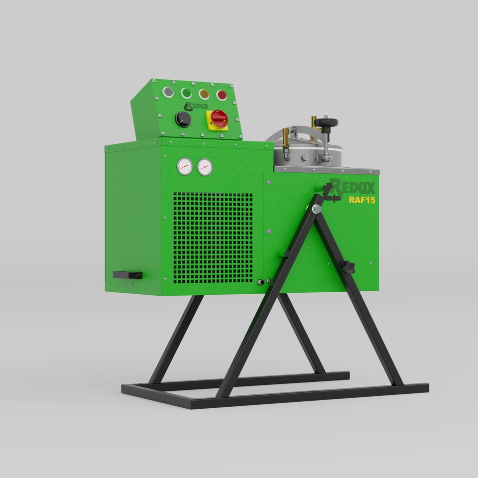 Destylatory serii RAF 15 zostały wyprodukowane zgodnie z surowymi normami Unii Europejskiej, posiadają Certyfikaty ATEX oraz poddano je licznym testom. Wszystkie urządzenia RAF o pojemności 15 l w zależności od potrzeb mogą być wyposażone w chłodnicę miedzianą CU lub w chłodnicę kwasoodporną INOX z chłodzeniem powietrznym. W celu ułatwienia obserwacji procesu destylacji destylator RAF 15 wyposażony jest w dwa wskaźniki temperatur – dla oleju oraz destylatu. Destylatory rozpuszczalnika są dostępne z instalacją elektryczną w wersji ADT, jak i w wersji antywybuchowej EEXD. Do destylacji rozpuszczalników o temp. wrzenia powyżej 160°C wymagane jest użycie generatora próżniowego pneumatycznego VACUUM SYSTEM REDUX.