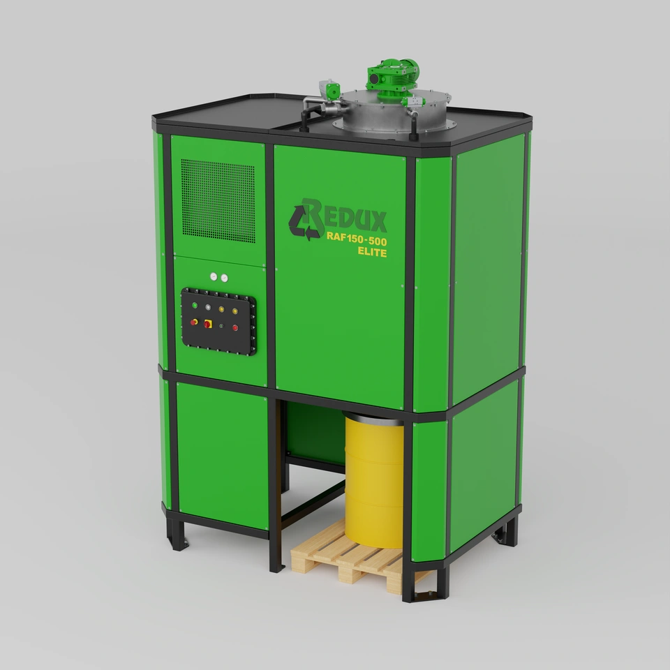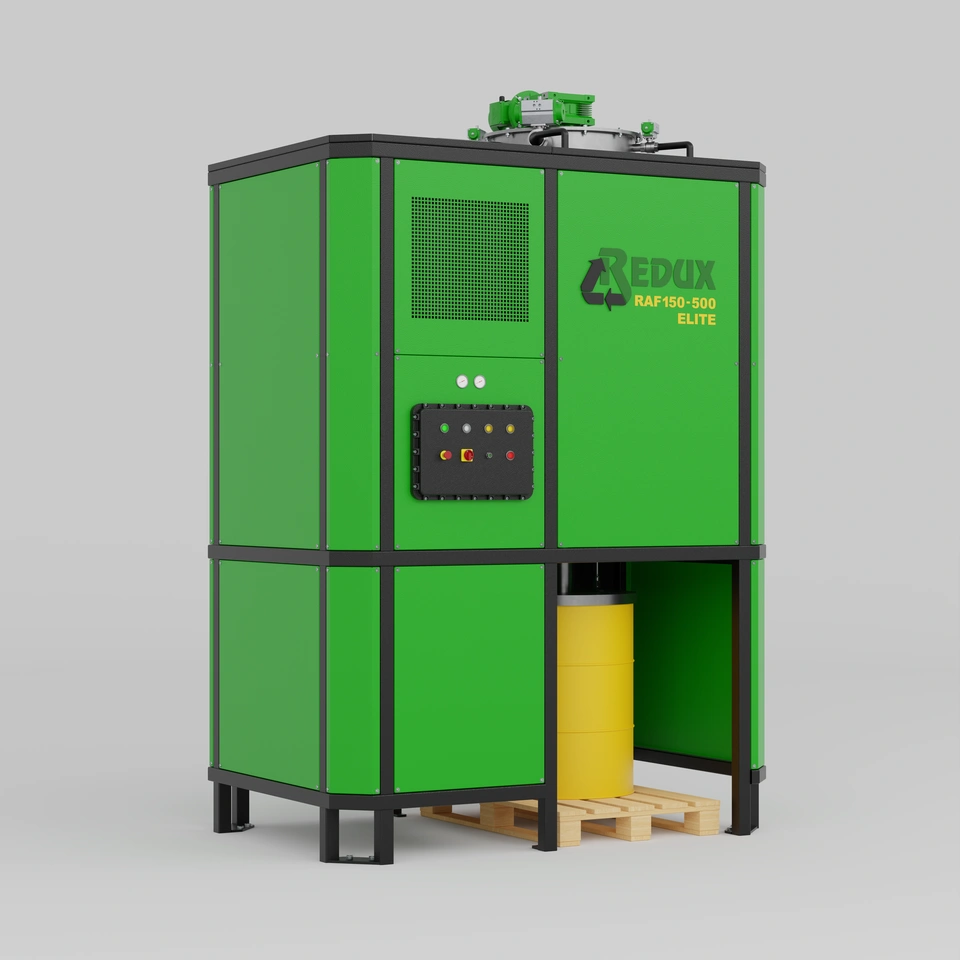 Destylatory rozpuszczalnika serii RAF ELITE zostały zaprojektowane w celu destylacji zanieczyszczonych rozpuszczalników w cyklu ciągłym. Urządzenia są produkowane zgodnie z obowiązującymi normami – opatrzone znakiem CE. Ten system destylacji zaprojektowano i wykonano tak, aby mógł pracować w pomieszczeniach strefy 1 (a więc tam, gdzie atmosfera wybuchowa występuje sporadycznie), z zabezpieczeniem przeciwwybuchowym i klasą temperatury T3 (max. temperatura pracy 200°C). W tej serii możemy zaproponować Państwu destylator przemysłowy o pojemności: