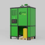 Etap 4: Pulsowanie zielonej lampki ostrzegawczej oznacza zakończenie cyklu. Jeżeli destylator rozpuszczalnika został ustawiony na krotność cykli destylacji (powtórne destylacje), urządzenie ponownie rozpoczyna wszystkie w/w etapy. Liczba cykli w trybie ciągłym w dużej mierze uzależniona jest od procentowej zawartości odpadów i zdolności beczki do przyjmowania osadu.